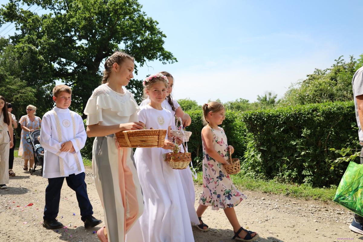 W tym roku w naszej parafii Msza święta oraz procesja eucharystyczna miały miejsce w Rui. Wierni szli za Najświętszym Sakramentem do czterech pięknie ozdobionych kwiatami ołtarzy. Uczestnictwo w procesji Bożego Ciała ma duże znaczenie, ponieważ jest to publiczne wyrażenie wiary w obecność Jezusa Chrystusa w Eucharystii.
