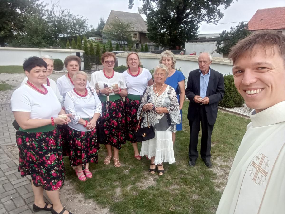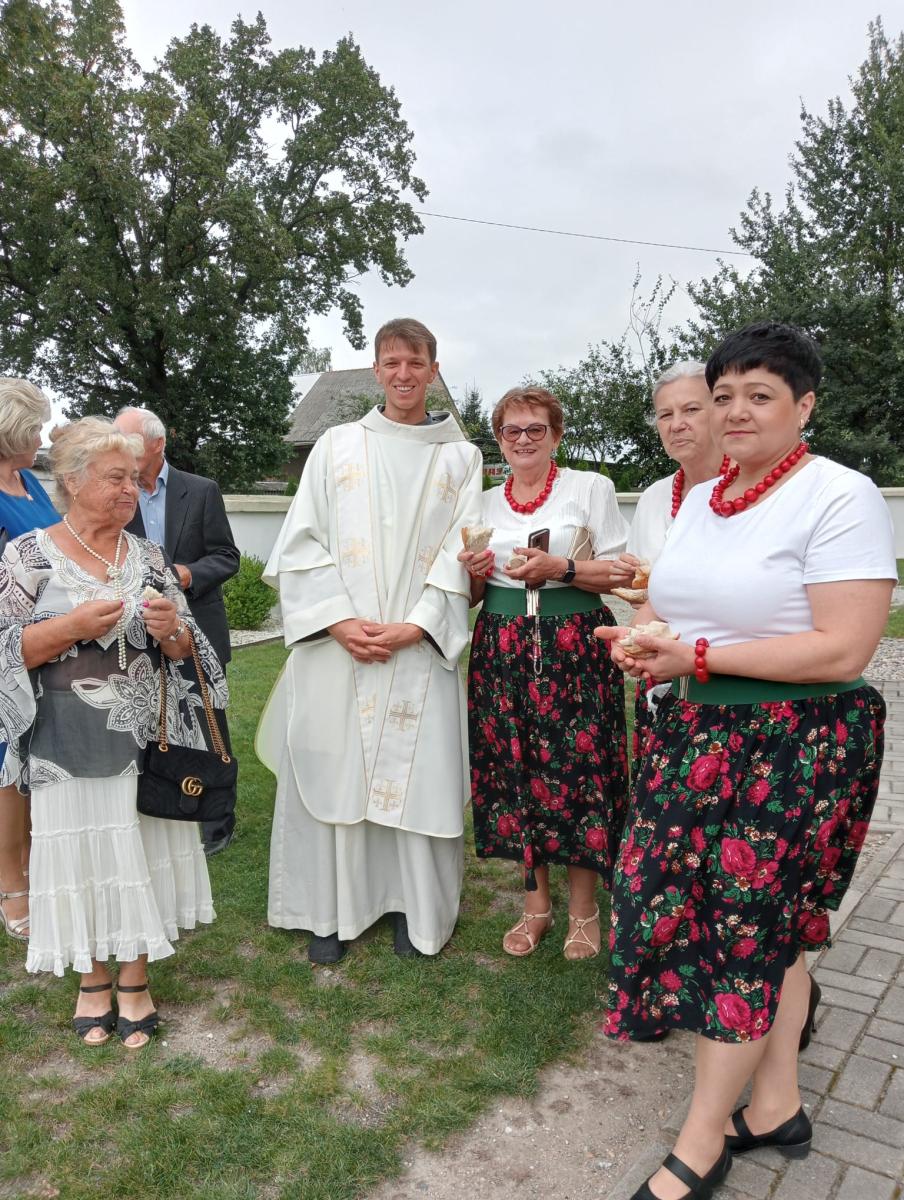 W tym roku gościliśmy w naszej parafii ojców franciszkanów – o. Krystiana, który przewodniczył Mszy świętej dożynkowej i diakona Szymona, którzy przyjechał do nas z Zamościa. Dziękujemy za ich obecność i mądre słowa wygłoszone w homilii. Dziękujemy również za piękne dekoracje, przyniesione do świątyni zboża, kwiaty, wieniec, warzywa i owoce, które dodały uroku całej mszy. Po każdej Mszy św. kapłani przełamali się chlebem ze wszystkimi wiernymi na znak Bożego błogosławieństwa.