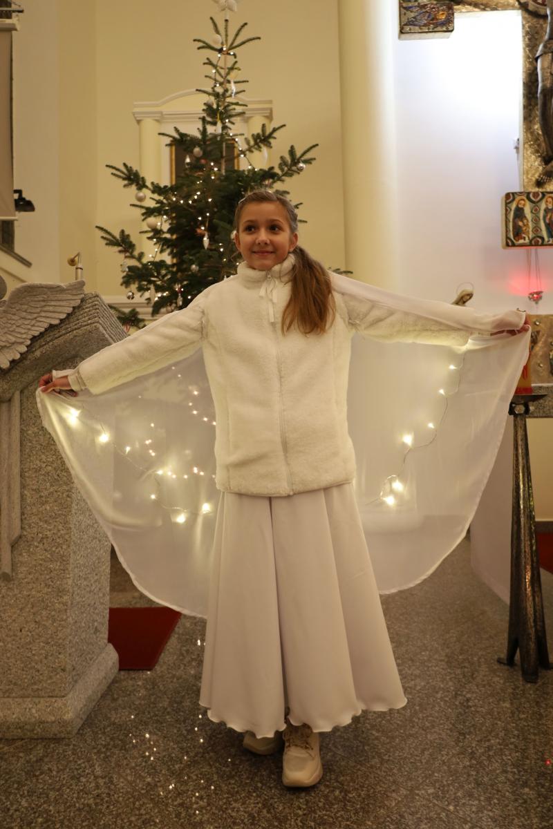 Występ rozpoczęła utalentowana mieszkanka naszej gminy Zuzanna Sprysak. Następnie mogliśmy obejrzeć występ artystyczny dzieci ze Szkoły Podstawowej w Wągrodnie, które wykonały „Taniec Aniołów” oraz zaśpiewały kolędę „Aniołowie biali”.
