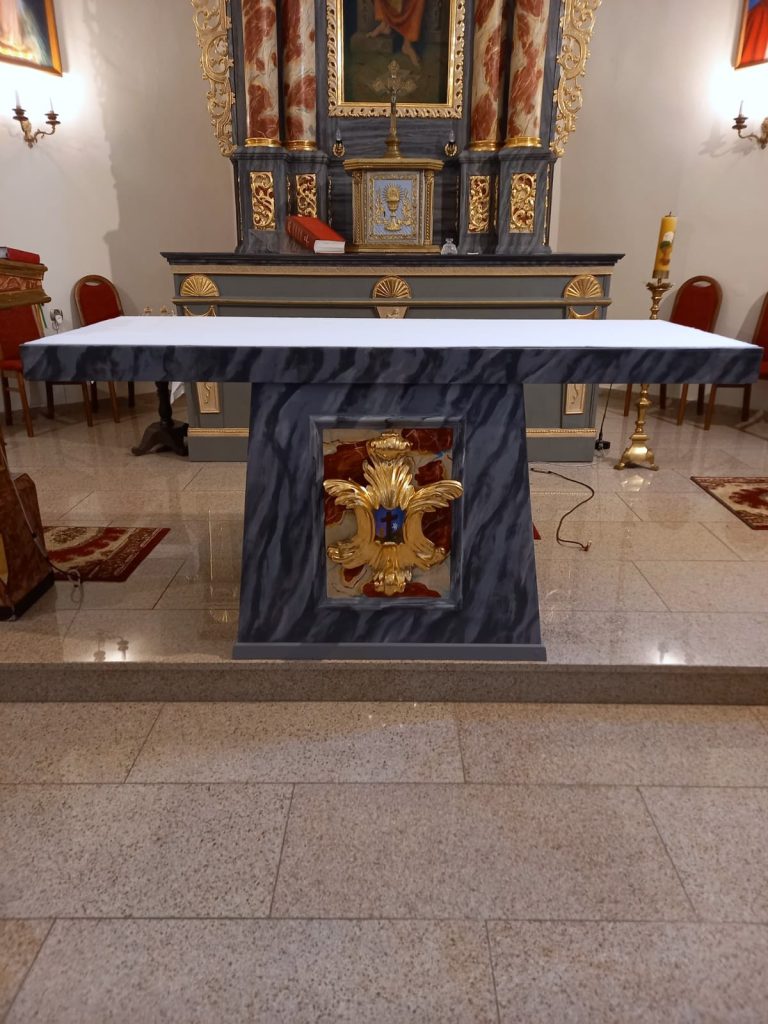 - Został odnowiony stół ołtarzowy w Rui pod względem całościowej kolorystyki. Dziękuje za pracę na rzecz parafii i uszycie nowych obrusów. Staramy się nie stawiać kwiatów na głównym ołtarzu przy tabernakulum ze względu na to, aby nie zniszczyć renowacji ołtarza.