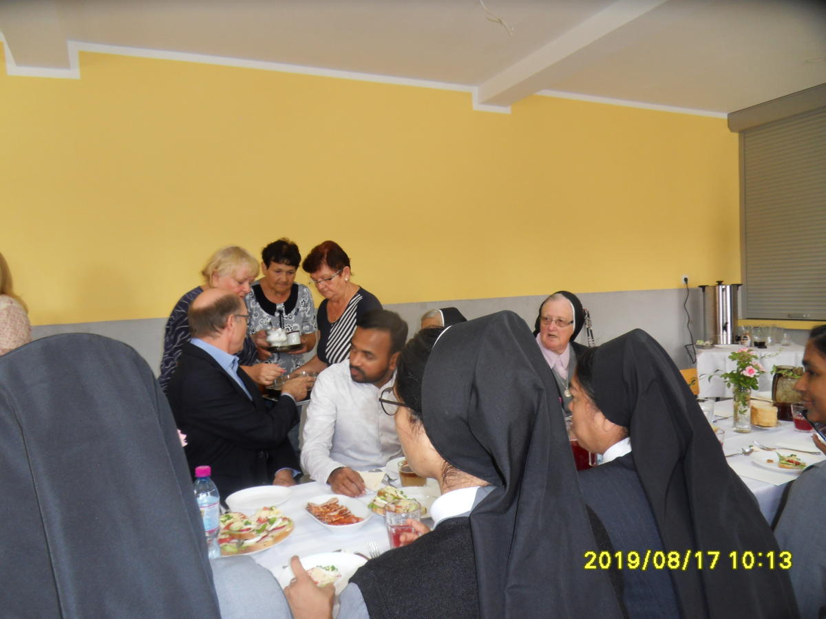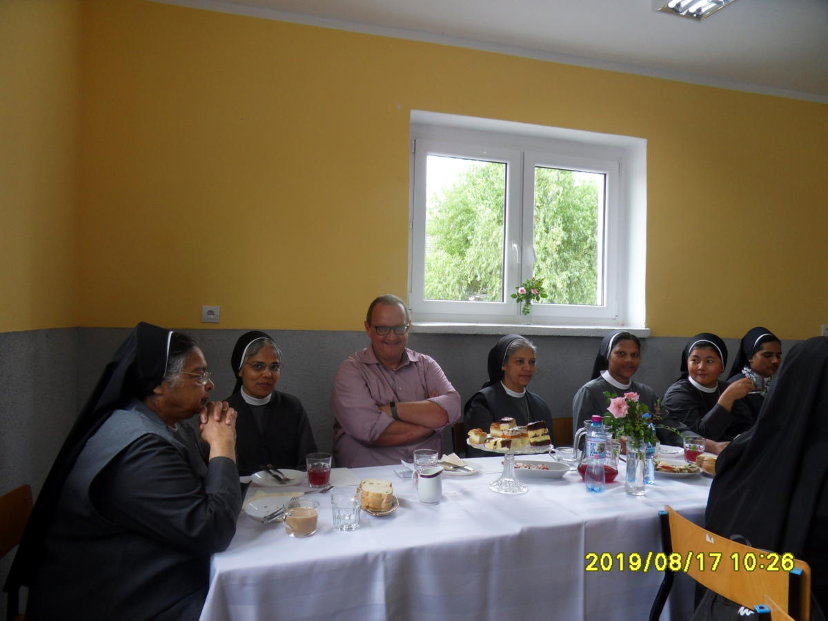 Dnia 17 sierpnia odwiedziła naszą parafię grupa pielgrzymów z Niemiec z zaprzyjaźnionym księdzem Michaelem z Kolonii. Spotkanie zaczęło się Eucharystią o godzinie 9.00 w asyście księdza z Filipin. Grupa liczyła 30 osób złożona z sióstr zakonnych i przedstawicieli Rady Parafialnej.
