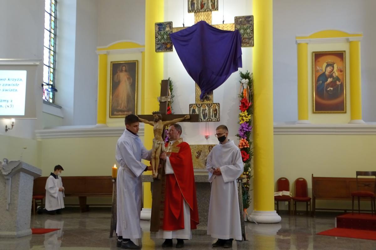 Wielki Piątek to czas zadumy nad męką i śmiercią naszego Pana. To czas, w którym ważna jest cisza, chwila zatrzymania i zastanowienia się nad własnym życiem. Tego dnia ks. Wiesław nawiązał właśnie do ciszy. Cisza jest potrzebna, żeby usłyszeć głos Boga. W odniesieniu do człowieka czasami lepiej jest pewne trudne momenty w życiu przemilczeć, gdyż „prawda sama się obroni”. Tego dnia młodzież przygotowała adorację przy grobie Pańskim. Była to piękna refleksja dziękczynno-chwalebna na cześć Pana.