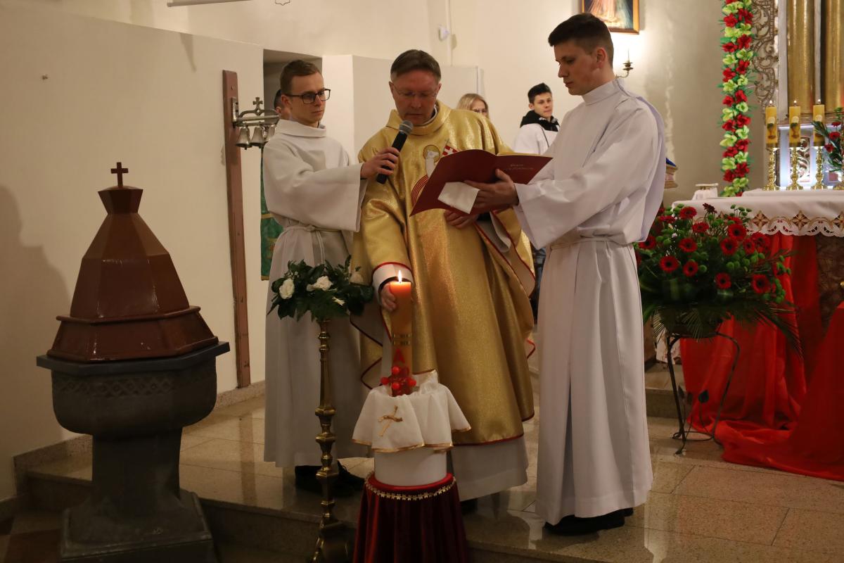 Wieczorem w kościele parafialnym w Rui Ks. Proboszcz odprawił Liturgię Wigilii Paschalnej, która została podzielona na pięć części: Liturgię Światła, Liturgię Słowa Bożego, Liturgię Chrzcielną, Liturgię Eucharystyczną i Procesję rezurekcyjną.