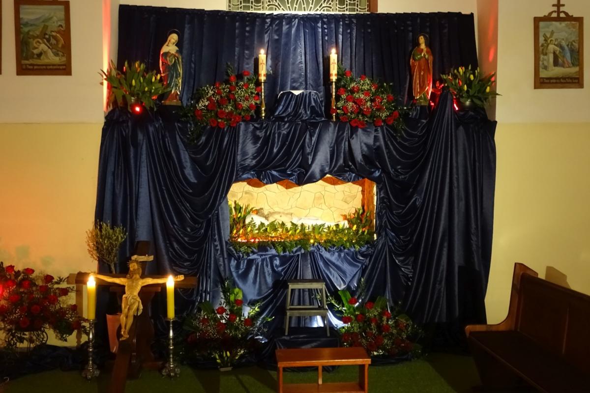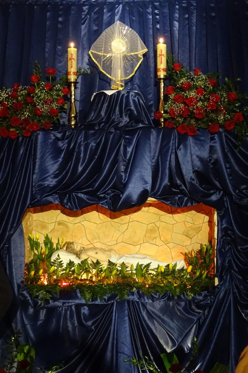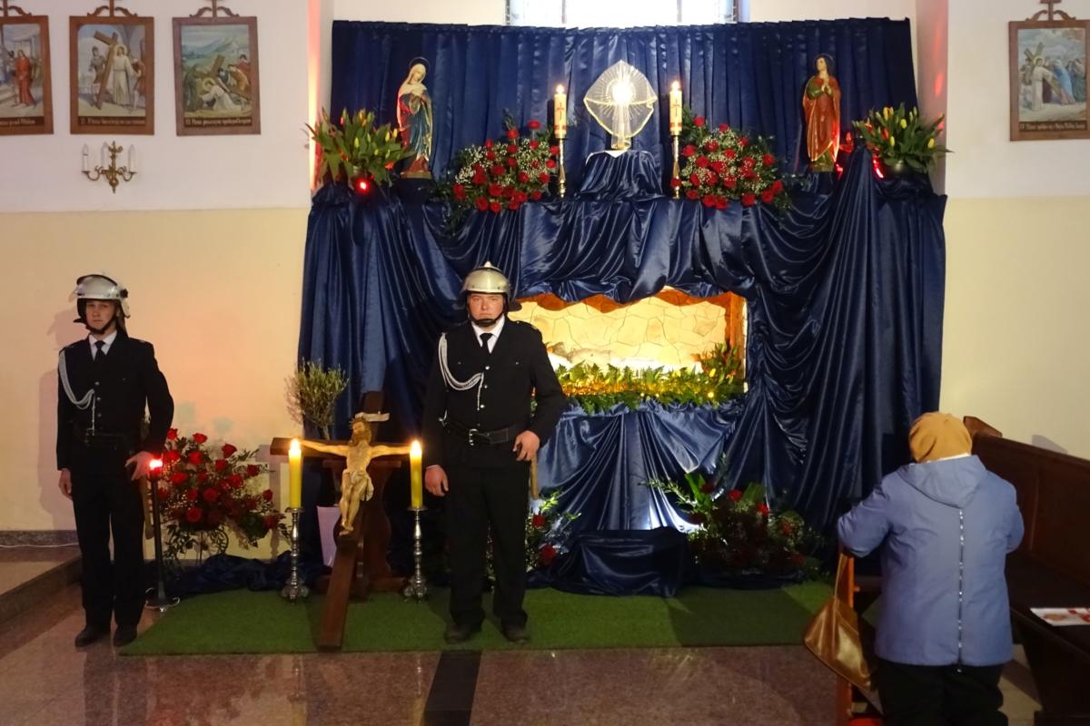 Na przeżywanie Liturgii Męki Pańskiej w Wielki Piątek udaliśmy się do Sanktuarium w Tyńcu Legnickim. W tym roku głównym celebransem był ks. Piotr Zawadka. Wymowny gest leżenia krzyżem, opis Męki Pańskiej wg św. Jana, piękna homilia nawiązująca do Krzyża oraz adoracja Krzyża, przeprowadziły nas przez pełne skupienia misterium. Ostatnią częścią była procesja z Najświętszym Sakramentem do Grobu Pańskiego. Wiernie, jak co roku, przy grobie czuwała Ochotnicza Straż Pożarna. Do późnych godzin wieczornych można było skorzystać z łaski sakramentu pojednania.