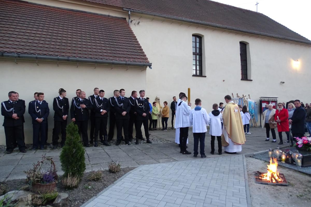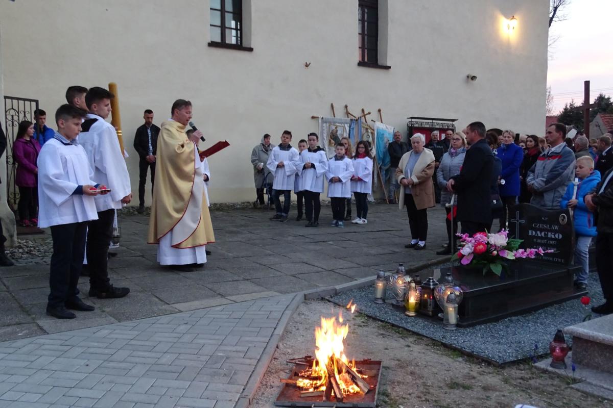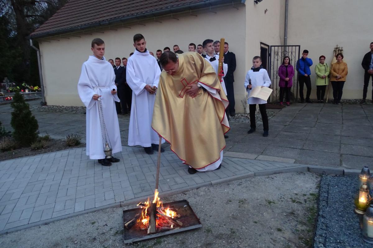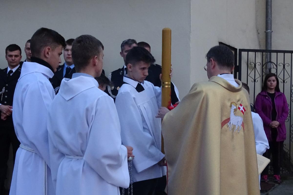 Wigilię Paschalną rozpoczęliśmy Liturgią Światła w kościele parafialnym w Rui. Ks. Proboszcz poświęcił ogień, od którego zapalił Paschał, a następnie wniósł go do okrytej mrokiem świątyni. Wierni zapalili od niego świece przekazując sobie światło na pamiątkę Jezusa Chrystusa, który jako pierwszy stał się dla nas światłem i wyprowadził nas z ciemności grzechu. Następnie, po uroczystych czytaniach i psalmach, odnowiliśmy przyrzeczenia chrzcielne. Po Eucharystii udaliśmy się w procesji rezurekcyjnej wokół kościoła, aby oznajmić, że Chrystus Pan zmartwychwstał i zwyciężył śmierć.