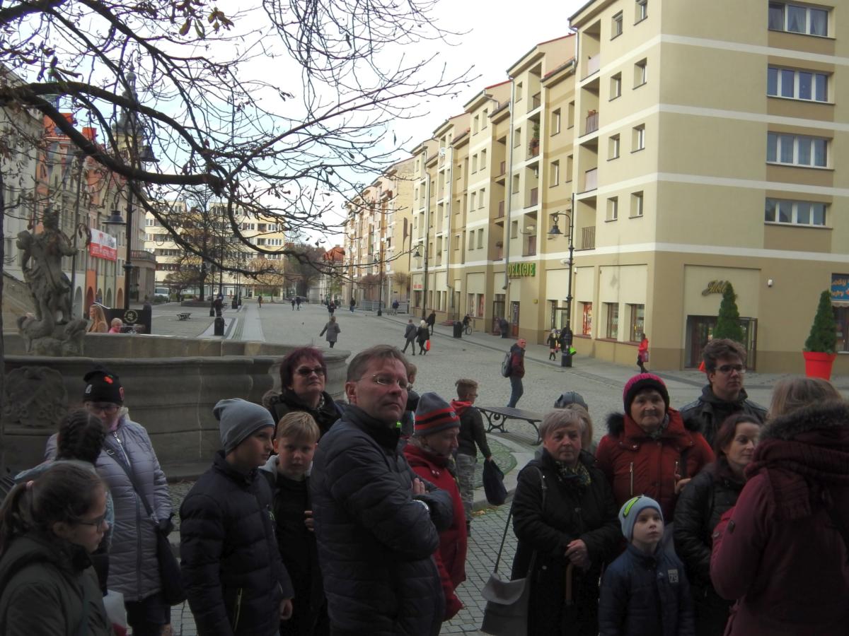 Następnym punktem zwiedzania był Zamek Piastowski jeden z najstarszych zamków znajdujących się na terenie Polski. Opowieści pani przewodnik przybliżyły nam historię tego miejsca. Spacerując ul. Najświętszej Marii Panny minęliśmy kościół ewangelicki Marii Panny, Katedrę, Rynek, Teatr im. H. Modrzejewskiej. Pięknie zdobiona elewacja Kamienicy Pod Przepiórczym Koszem wzbudziła zachwyt całej grupy. Po dotarciu na dziedziniec Akademii Rycerskiej i wysłuchaniu historii związanej z tym miejscem podziękowaliśmy pani przewodnik. Mimo tylu atrakcji został czas wolny na kawę i KFC.